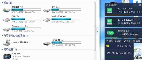 将U盘和移动硬盘连接到电脑上,我们就可以看到多余的盘符了。