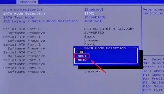 如果硬盘模式不兼容,系统启动时将无法识别硬盘,导致系统蓝屏。 遇到此类问题时,我们可以在电脑重新启动时一直按F2进入BIOS。 不同机型进入BIOS的方法不同。 进入BIOS系统-选择【高级选项】-选择sata通道-将IDE模式改为AHCI,然后按F10保存退出。