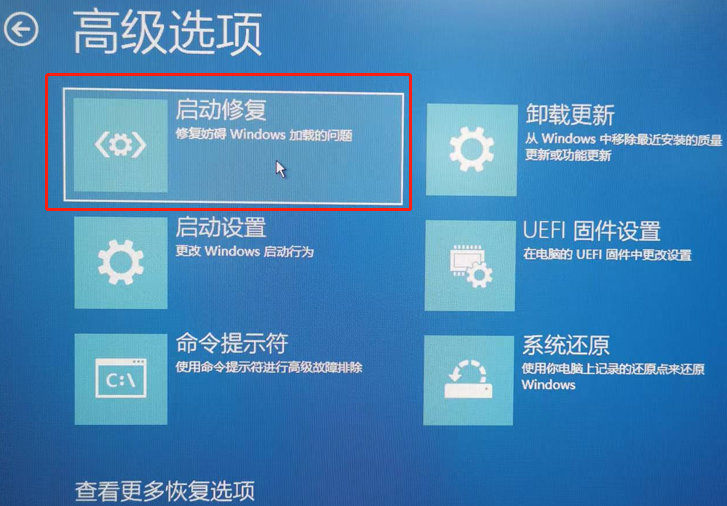 4. 确认屏幕上是否出现“修复”界面。 如果是,请点击“高级修复选项”;