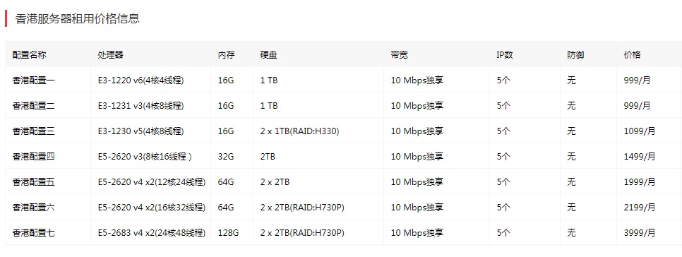 如果您想租用稳定的香港服务器,A5互联的香港服务器是一个不错的选择,多种硬件配置搭配,全新自购硬件稳定性高,网络带宽充足,总体价格便宜。我们以下面的价格表可以参考: