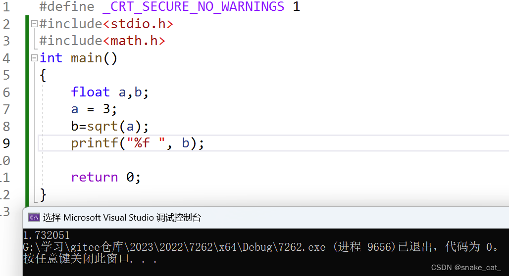 补充:sqrt函数和pow函数在使用时,都需要在开头加上#include;并且在给整数开根或者pow函数中次数小于1时,我们要注意是否需要给int 的函数改成float或者double,不然的话3的平方根就会变成整数1,这个也是要着重注意的
