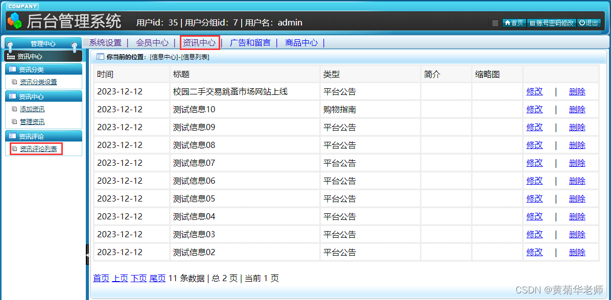管理资讯:查看已录入资讯列表,支持删除和修改