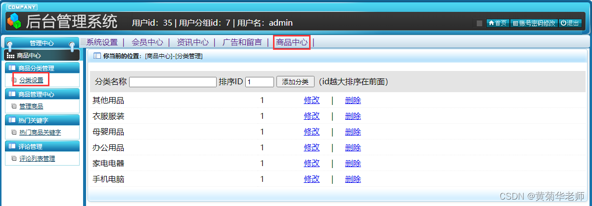 资讯分类:录入、修改、查看、删除资讯分类