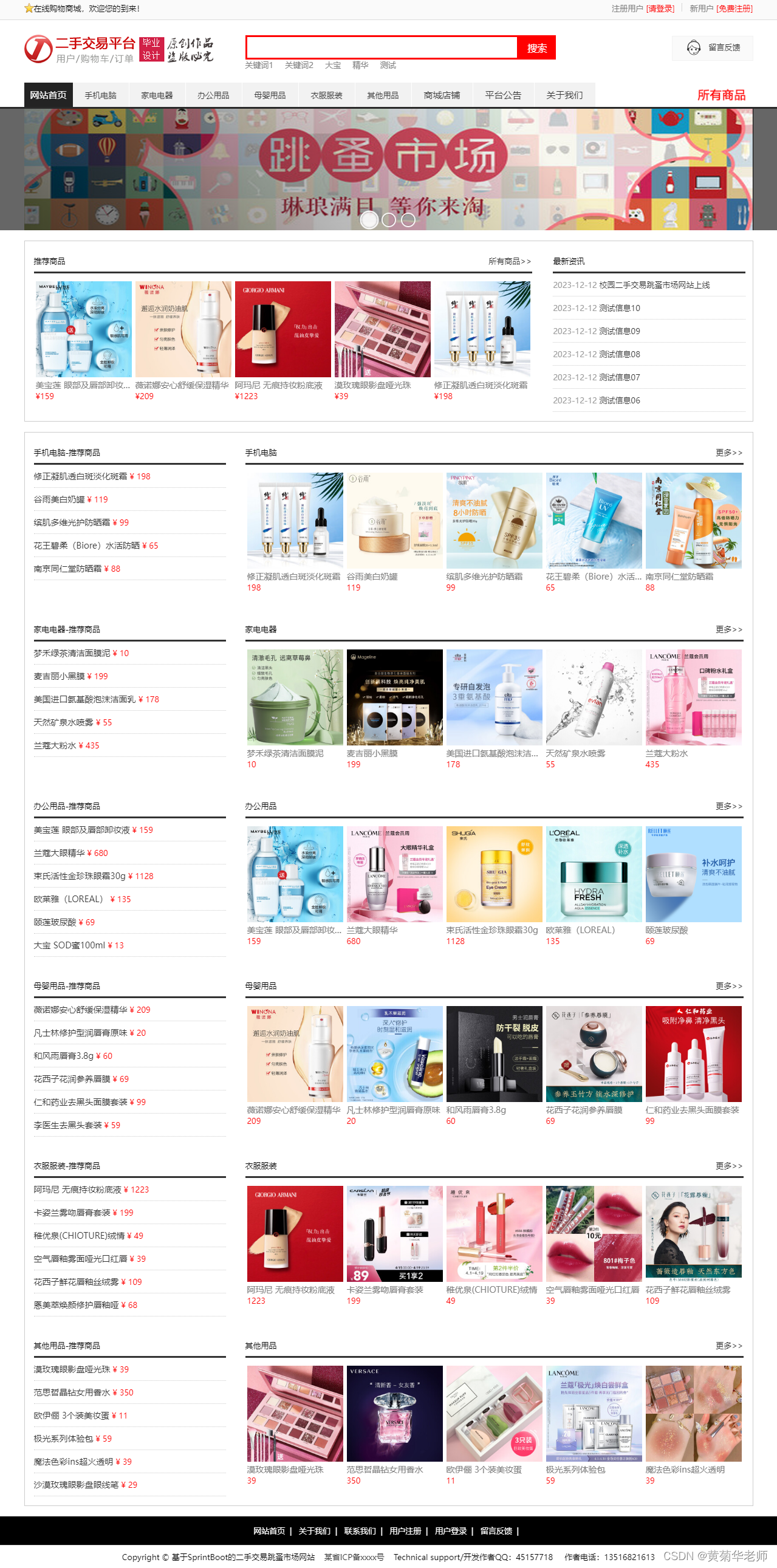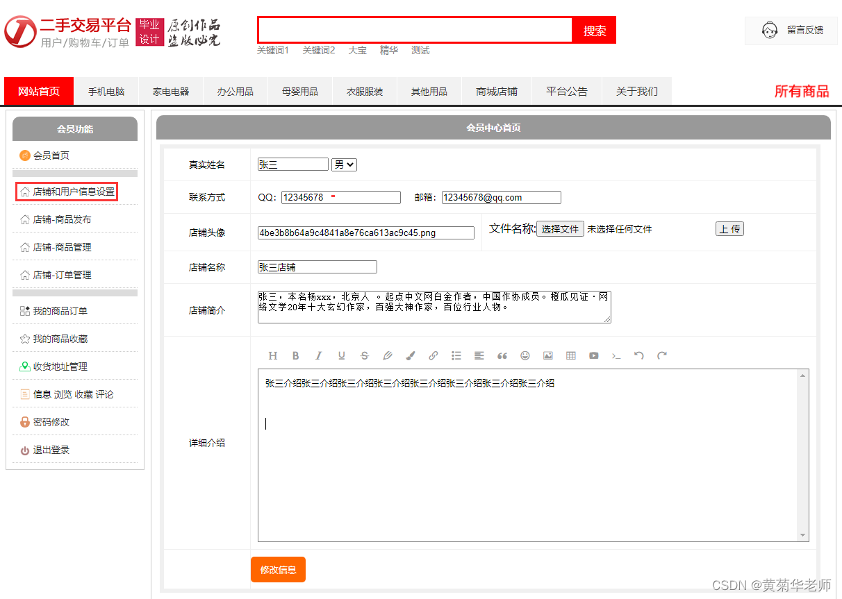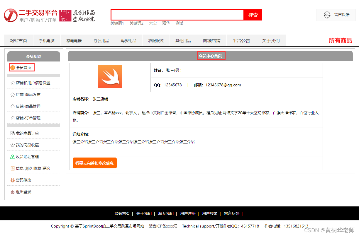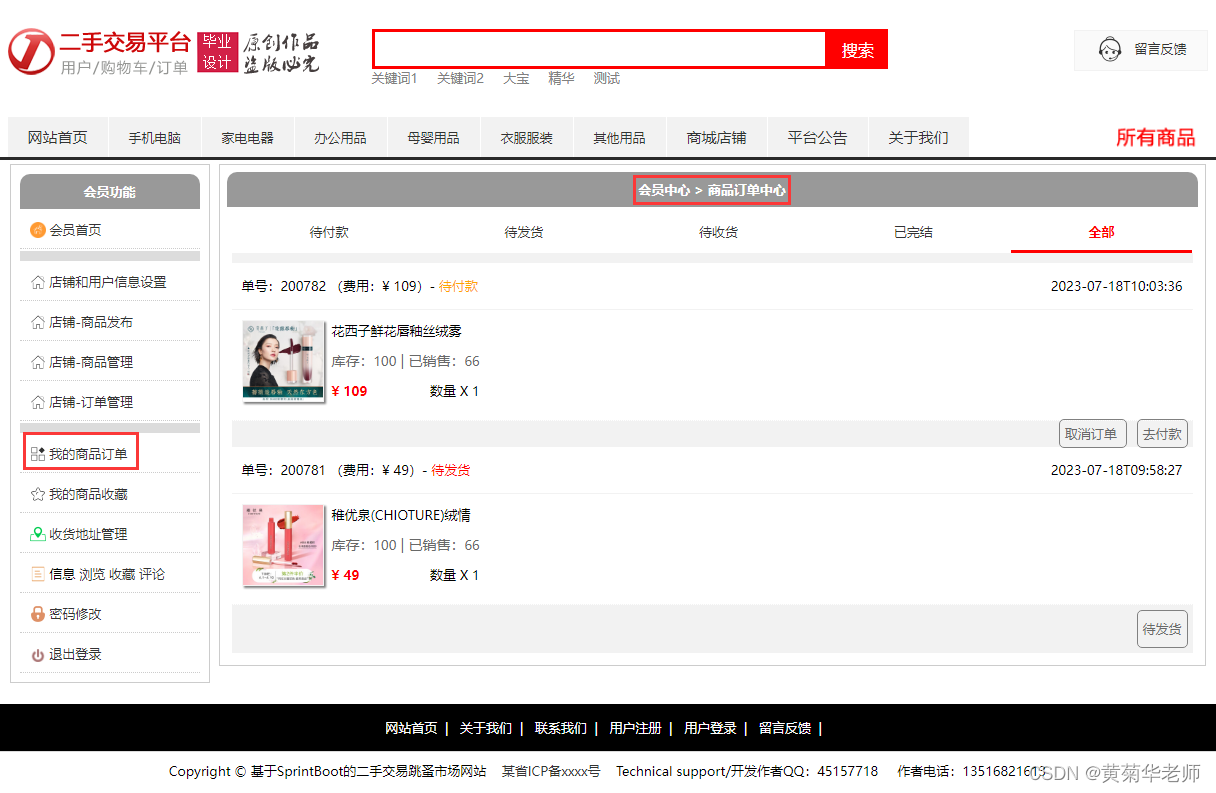 目的:本课题主要目标是设计并能够实现一个基于web网页的二手交易网站系统,整个网站项目使用了B/S架构,基于java的springboot框架下开发;用户通过登录网站,查询二手交易商品,购买二手交易网站商品,下单;店主通过自己的商城管理平台发布二手交易商品、管理商品、处理订单;平台管理员通过后台管理所有的资讯、商品、订单查看等。