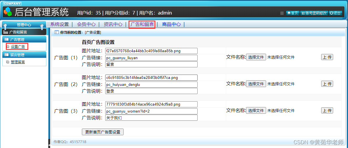 广告管理:设置小程序首页轮播图广告和链接