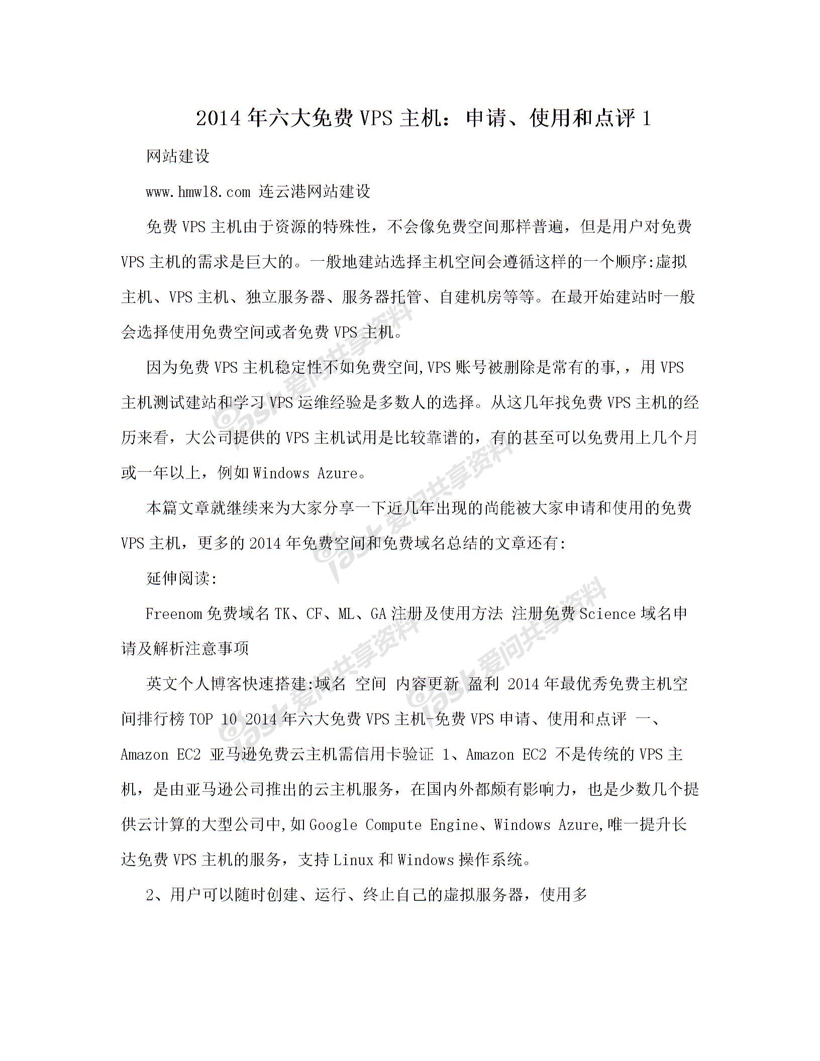 2014年六大免费VPS主机申请关于减租申请书的范文关于减免管理费的申请关于解除警告处分的申请关于工程延期监理费的申请报告关于撤销行政处分的申请使用和点评1网站建设wwwhmwl8com连云港网站建设免费VPS主机由于资源的特殊性不会像免费空间那样普遍但是用户对免费VPS主机的需求是巨大的一般地建站选择主机空间会遵循这样的一个顺序虚拟主机VPS主机独立服务器服务器托管自建机房等等在最开始建站时一般会选择使用免费空间或者免费VPS主机因为免费VPS主机稳定性不如免费空间VPS账号被删除是常有的事用VPS主机测试建站和学习VPS运维经验是多数人的选择从这几年找免费VPS主机的经历来看大公司提供的VPS主机试用是比较靠谱的有的甚至可以免费用上几个月或一年以上例如WindowsAzure本篇文章就继续来为大家分享一下近几年出现的尚能被大家申请和使用的免费VPS主机更多的2014年免费空间和免费域名总结初级经济法重点总结下载党员个人总结TXt高中句型全总结vps主机免费.doc高中句型全总结vps主机免费.doc理论力学知识点总结pdf的文章还有延伸阅读Freenom免费域名TKCFMLGA注册及使用方法注册免费Science域名申请及解析注意事项英文个人博客快速搭建域名空间内容更新盈利2014年最优秀免费主机空间排行榜TOP102014年六大免费VPS主机-免费VPS申请使用和点评一AmazonEC2亚马逊免费云主机需信用卡验证1AmazonEC2不是传统的VPS主机是由亚马逊公司推出的云主机服务在国内外都颇有影响力也是少数几个提供云计算的大型公司中如GoogleComputeEngineWindowsAzure唯一提升长达免费VPS主机的服务支持Linux和Windows操作系统2用户可以随时创建运行终止自己的虚拟服务器使用多少
