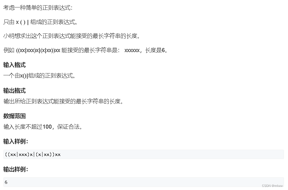 当我们碰到或符号,则取或符号之前长度和或符号之后长度(从或符号到下一个右括号或者终点)的最大值。