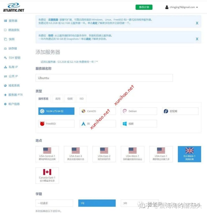 atlantic创建免费1年的服务器实例