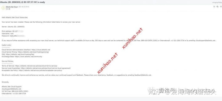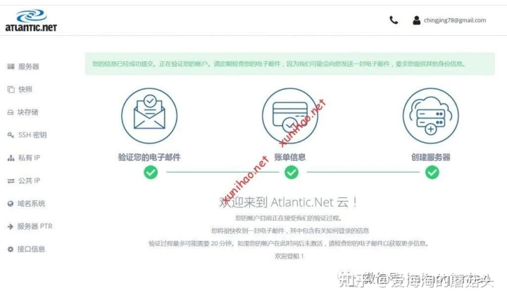 经过提交信用卡账单信息后,整个免费一年的atlantic VPS主机账号就注册成功了,等着邮箱收到atlantic的欢迎邮件,几分钟就收到了。