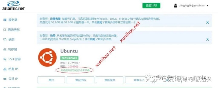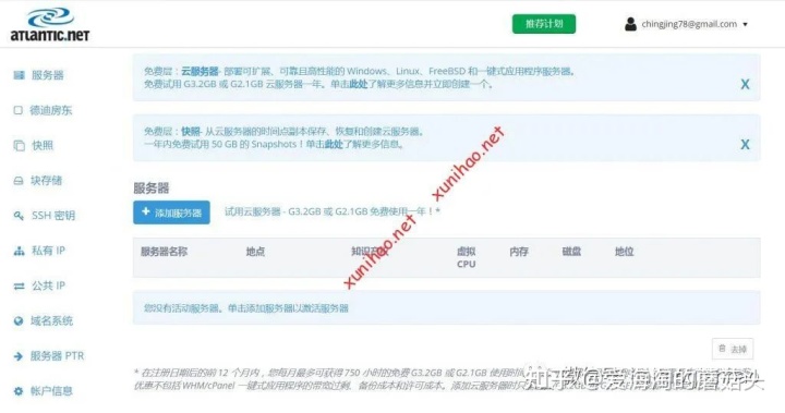 收到欢迎邮件之后vps主机免费,登陆atlantic账户。就可以添加atlantic的免费1年主机实例了。