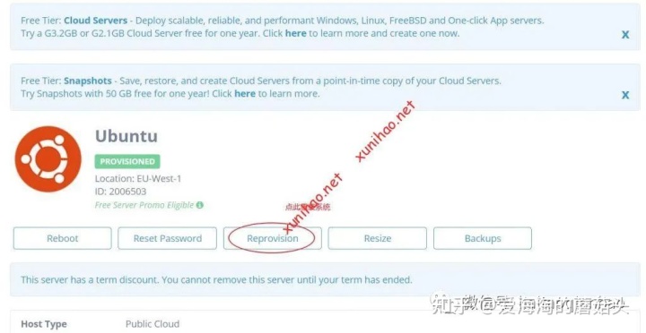 点击 "Reprovision"就可以重装VPS的操作系统了,这个是不花钱的。