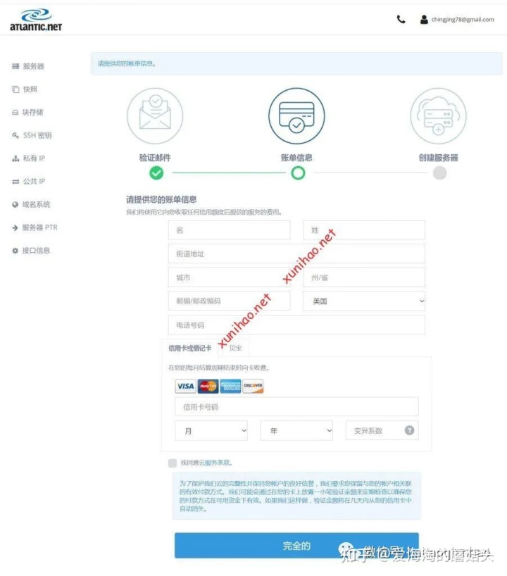 虚拟号查询了网上其它注册atlantic免费VPS账号的教程,中国的信用卡也可以注册成功。账单就用拼音填写中国的地址。