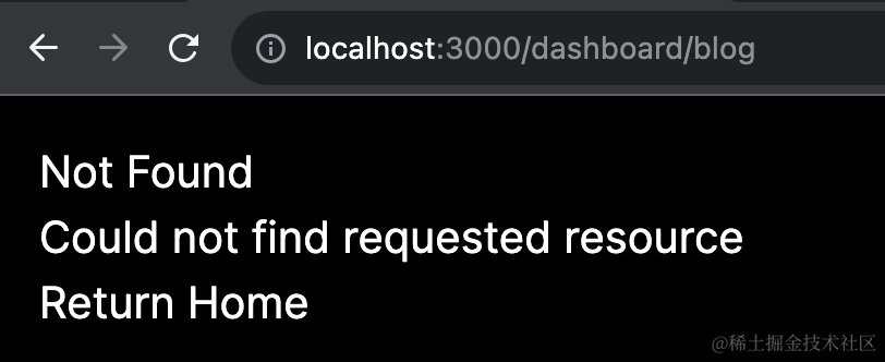 答案是不会。访问 /dashboard/blog/yayu 依然会走到默认 not-found 路由效果。这是因为 not-found.js 被用于当 notFound 函数被抛出的时候。(notFound 函数是 next/navigation 这个包提供的一个方法)