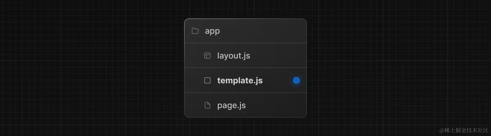 定义一个模板,你需要新建一个名为 template.js 的文件,该文件默认导出一个 React 组件,该组件接收一个 children prop。我们写个示例代码。在 app目录下新建一个 template.js文件。