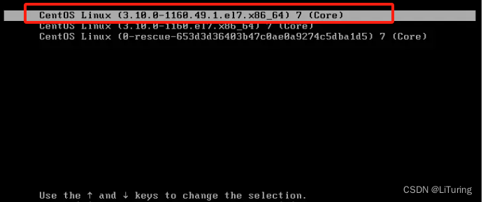 2.使用键盘↑和↓键选择上图中的第一行,然后按下键盘上的e进入编辑模式,如下图