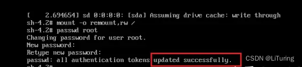 最后输入exec /sbin/init 命令,等待系统自动重启就修改完成啦。