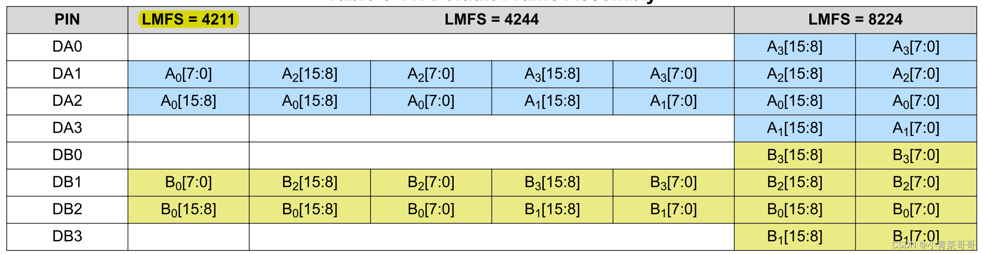 在这里我们再把图2放上,因为接下来在不同的LMFS模式下,我们从每条lane的rx_tdata取数时要用到这种结构。