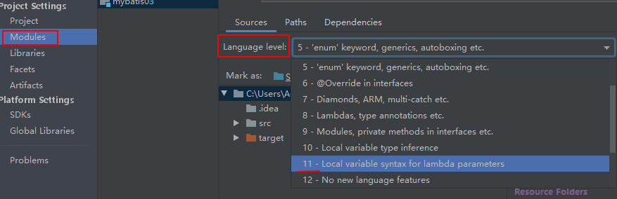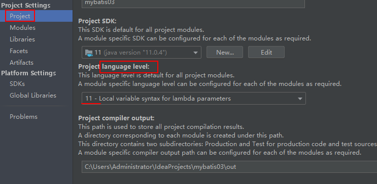 第二步:查看Project Structure里面Language Level是不是也为11(自己本地JDK版本)