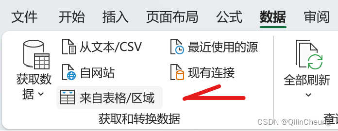 第四步,在数据选项卡中,选择来自表格/区域。注意,由于Excel版本问题,部分读者的实际界面可能与笔者有略微差异,不必担心,选择类似功能的选项即可。