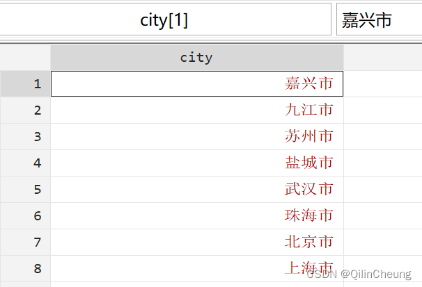 假设我们有一个城市列表的.dta数据,数据结构如下: