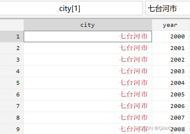 当我们选择将“时间”作为行维度时(以年份唯一标识观测值),面板数据格式如下: