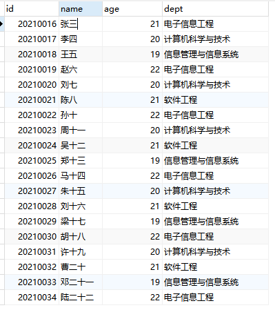 该表用于存储学生的基本信息,每个学生的信息会在表中以一条记录的形式进行存储。通过该表,可以实现学生信息的增加、修改、删除和查询功能。