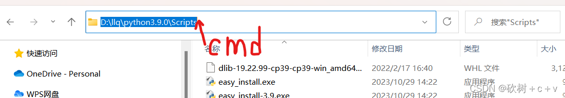 找到自己Python安装的位置,我的是放在D盘,Scripts文件夹下(我有一点忘了,是放在Scripts文件夹里面还是外面了,如果不成功的话,两个位置都是试一试,真的可以安装成功)