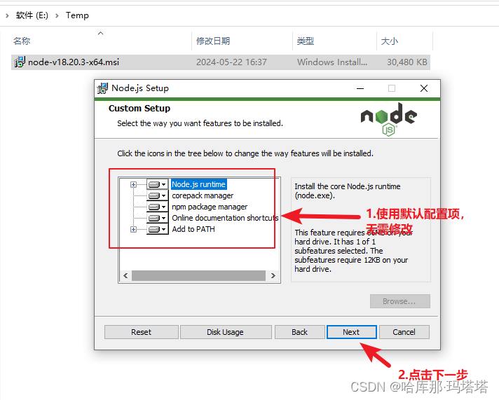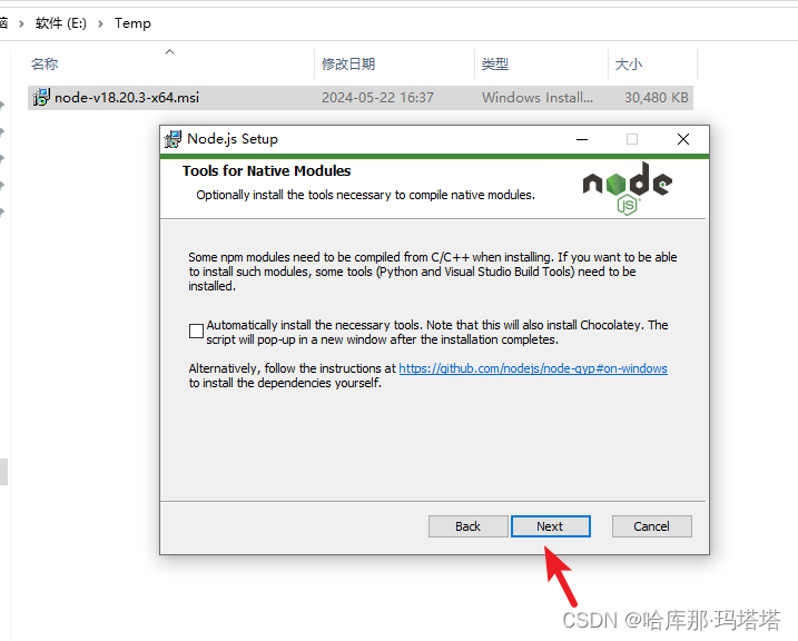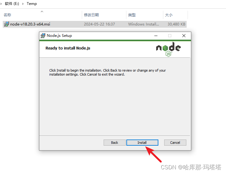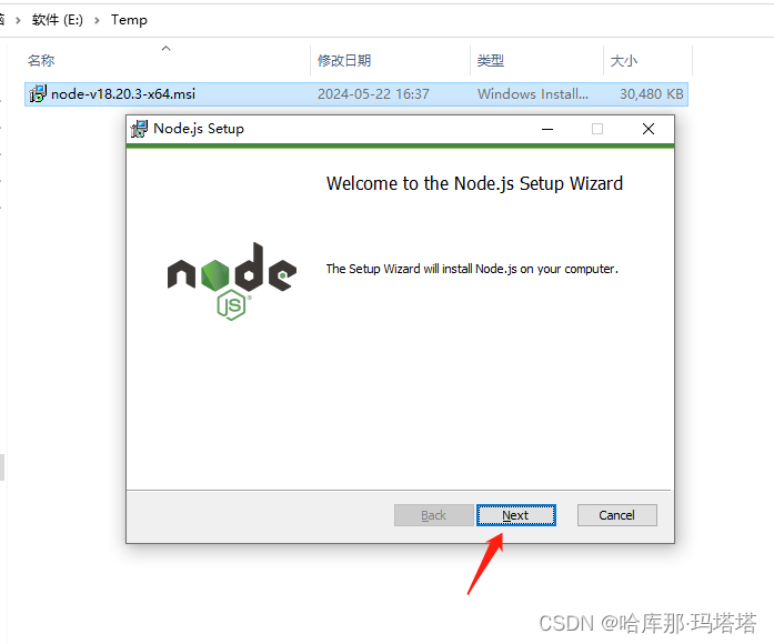 Tips:如果想下载指定版本,点击下图所示位置,即可选择自己想要的版本下载。也可直接打开此链接https://nodejs.org/dist/