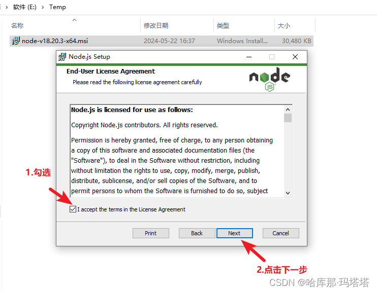 2.3 选中I accept the terms in the License Agreement,点击下一步