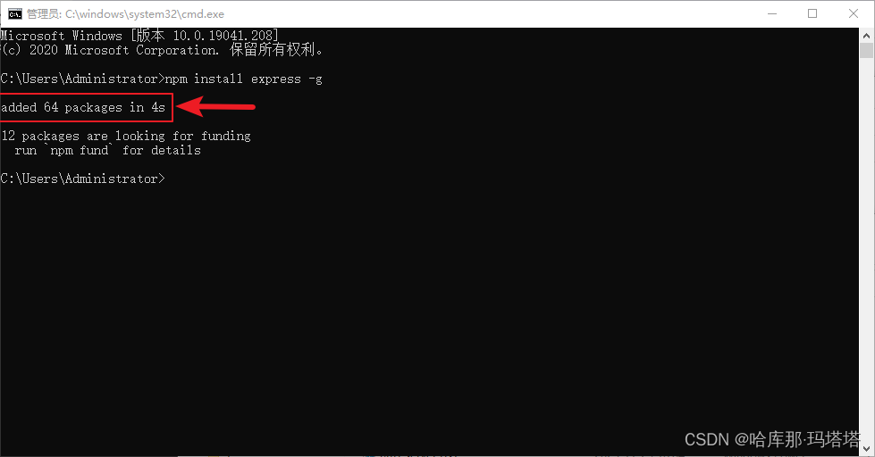 配置完成后,全局安装一个最常用的express模块测试,按下【win+R】键,输入cmd,打开cmd命令窗口,输入以下命令