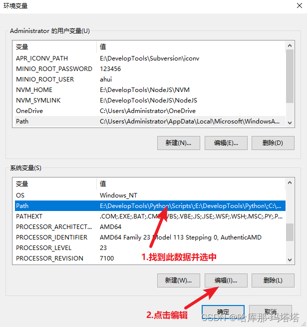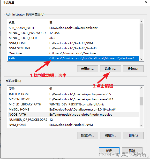 3.8 在【系统变量】中选择【Path】点击【编辑】