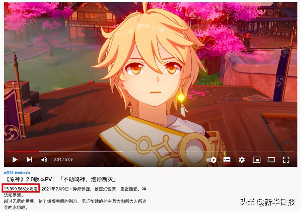 社交媒体上,《原神》的Twitter官方账号有近300万关注者;YouTube上发布的《原神》2.0版本预告pv,播放量达到了1500万,远超中国玩家聚集地B站的800万播放量。