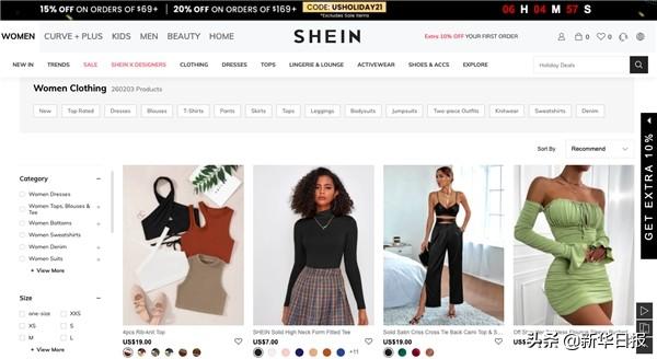 打开SHEIN,官网每天可以上新1000件新品,这一数字是英国超快时尚品牌一周的平均水平。路透社曾报道,SHEIN的服装从设计到生产只需要3天,源源不断的新品让无数美国消费者对SHEIN流连忘返。