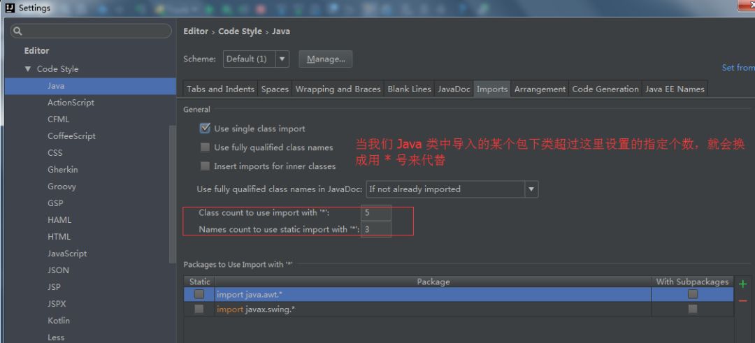 还有就是优化引入,假设你引入了一个包下的很多个文件,他就会给你优化成xxx包名.*。也就是下面这个图的配置啦。