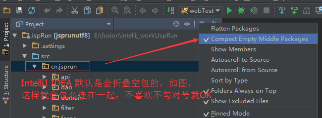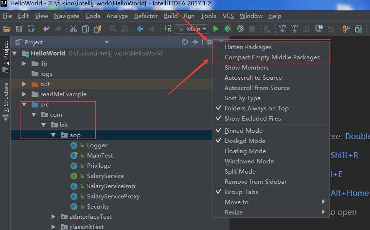这样子配置,可以很清楚的看到目录的层级结构。但是你要是点了,他就会把空的包直接连在一起,就是com.lxk.aop。。。。等等吧,试一下就知道啦。