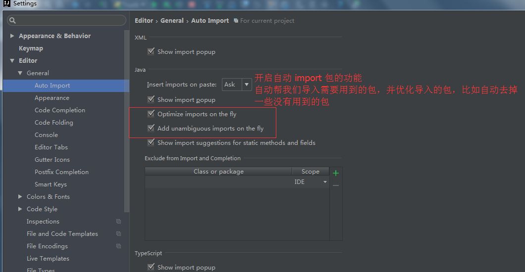 自动导入包和导入包优化的设置