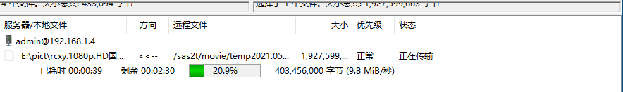 奇怪,速度正常了?服务器是sas硬盘加ssd,基本达到了满速,因此基本排除服务器软件本身的问题,但是光一个测试还不够,然后我用找了台联想笔记本,ubuntu 20.04lts linux桌面系统filezilla无法连接到服务器,安装FileZilla ,同样设置为明文,单连接被动,sas->ssd,测试如下: