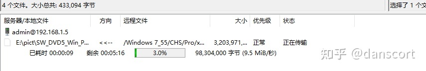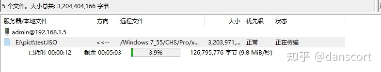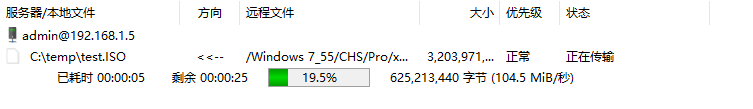 也是正常的. 这就奇怪了,难道是linux系统的服务器和win10 最新版出了兼容问题?不应该啊,毕竟这只是个网络协议,win10怎么知道服务器跑的是鬼系统,不过本着探寻根源的态度,我用一台老的工作站 win7 pro系统做服务器,设置和linux系统的xfile相同,然后再用win10 + FileZilla进行测试,速度如下: