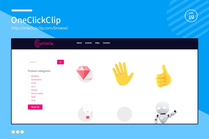 OneClickClip,这是一个可免费商用的Gif图库,网站页面简洁,GIF的质量都很高。由于这个网站刚上线不久,现有的GIF资源较少,但这个网站承诺每周都会更新资源,所以对GIF有需求的同学,可以对这个网站保持关注。