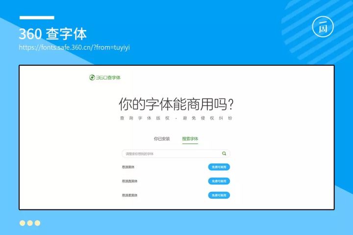 360查字体,就是用于查询某款字体是否可商用的工具。当你对字体的版权模棱两可时,可将字体的名称粘贴到搜索框中,即可去除你心中存在的疑惑。