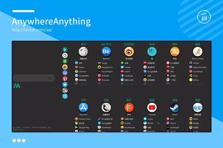 如果只能推荐一个网址导航工具,我会毫不犹疑地选择AnywhereAnything。