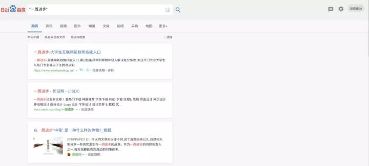 举个例子,我以“一周进步”作为关键词进行搜索,搜索返回的结果如下: