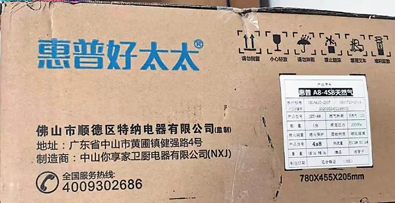 福州市消委会调查还发现,消费者购买的“惠普好太太”牌燃气灶,燃气灶标签上标注“佛山市方纳电器有限公司”字样。 监理单位为“佛山市顺德区特纳电器有限公司”。