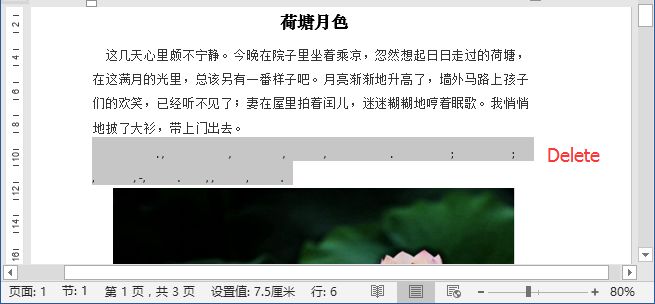 (3)返回文档,可以看到文本中的英文全部被删除了。 然后选中标点符号,按【删除】即可删除,效果如图。
