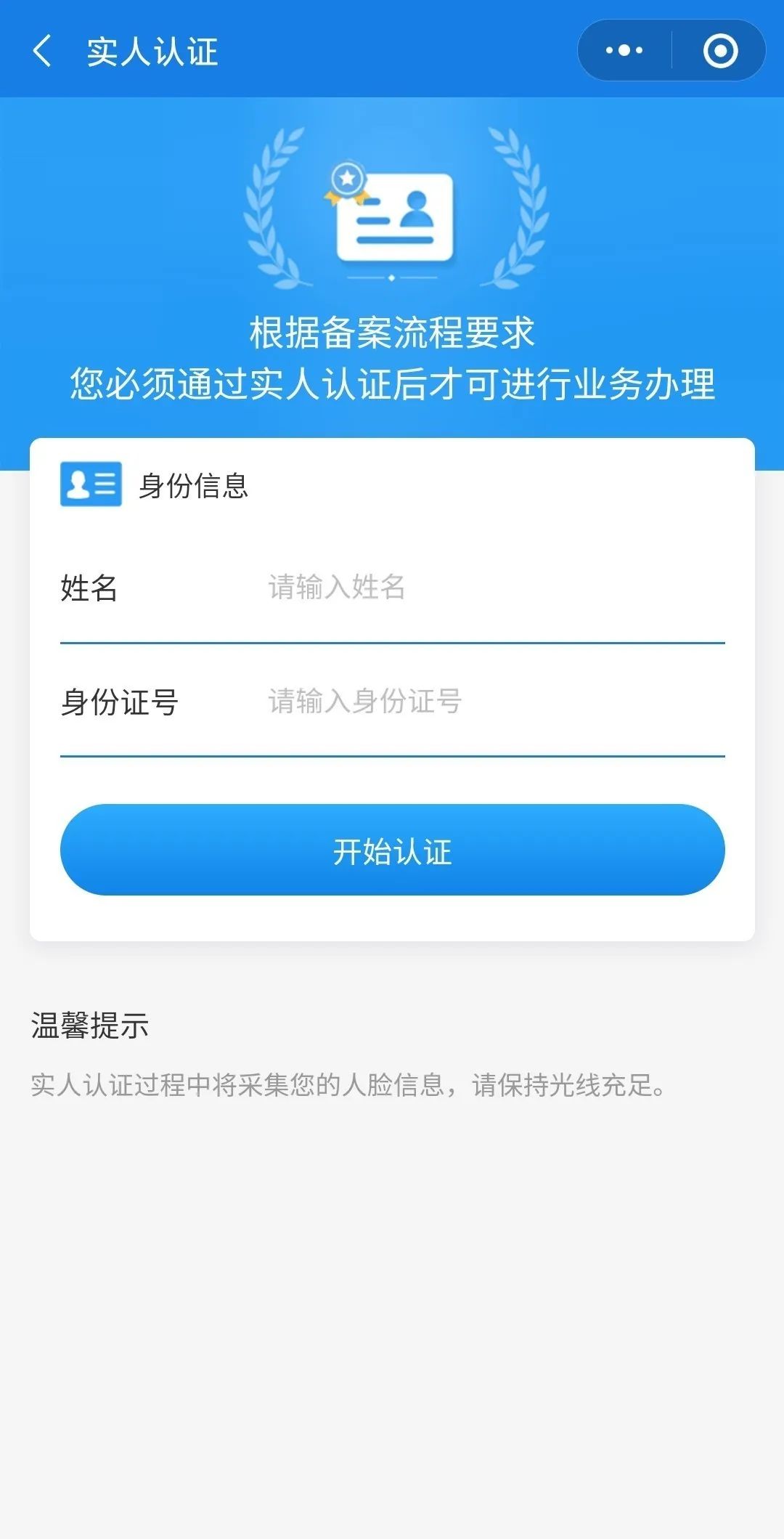1. 输入您的姓名和身份证号码,完成实名认证