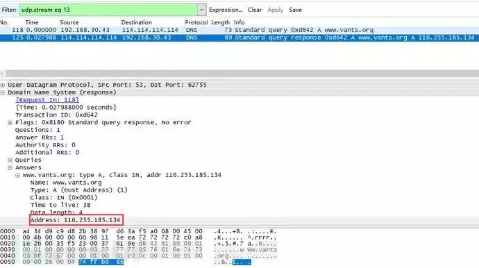 从上图可以看出,DNS的解析非常轻量级,采用UDP协议,一个DNS查询包,一个响应包,两个包,简单、轻量、高效。
