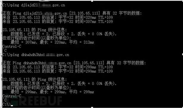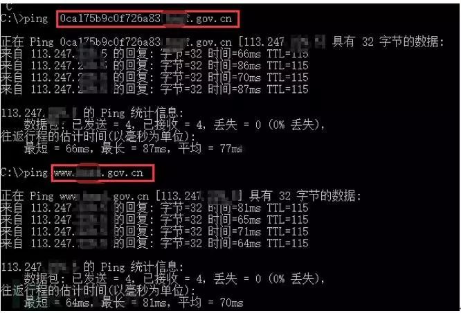 通过ping测试发现主站解析为61.191.*.*,但是泛解析解析为23.105.65.113,这是美国的IP。 DNS的泛解析结果肯定是被黑客恶意修改的。