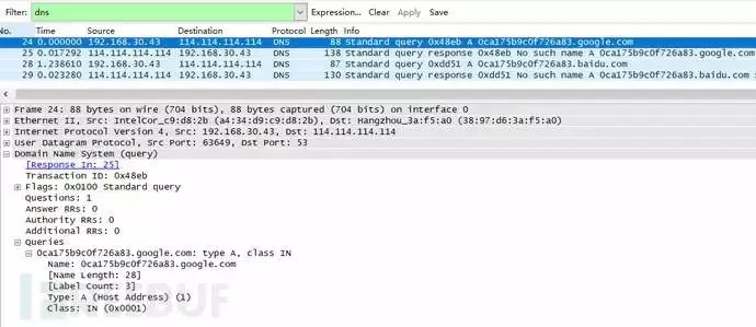 网络建立之初,所有访问都是通过IP地址实现的。由于web等协议和应用的兴起,有了域名,通过IP访问一方面不太好记,另一方面由于负载、CDN等原因,由于各种原因,单纯使用IP地址访问会带来一些问题。通过域名访问,中间设备只知道IP,所以最终解析到对应的IP地址进行访问。用于解析的协议称为DNS,其主要功能是将域名解析为对应的IP地址。DNS的创建是互联网高手的杰作,通过它广大互联网用户可以通过域名访问相应的网站。可以看到,DNS服务器执行查询后,找不到这样的结果。DNS泛分析还存在安全问题?DNS的泛解析结果肯定是被黑客恶意修改的。