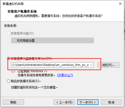 点击“浏览”选择Windows Thin PC系统镜像;