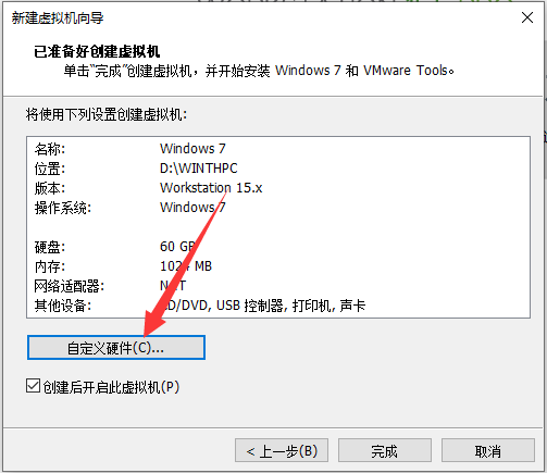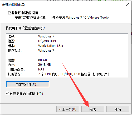 这里的设置稍后可以更改,您可以根据需要配置硬件。 然后确认,点击完成,开始自动创建磁盘。